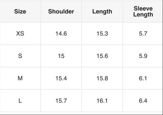 *FIRST SIZE CHART (Double Layered T) SECOND CHART (Cropped T)*